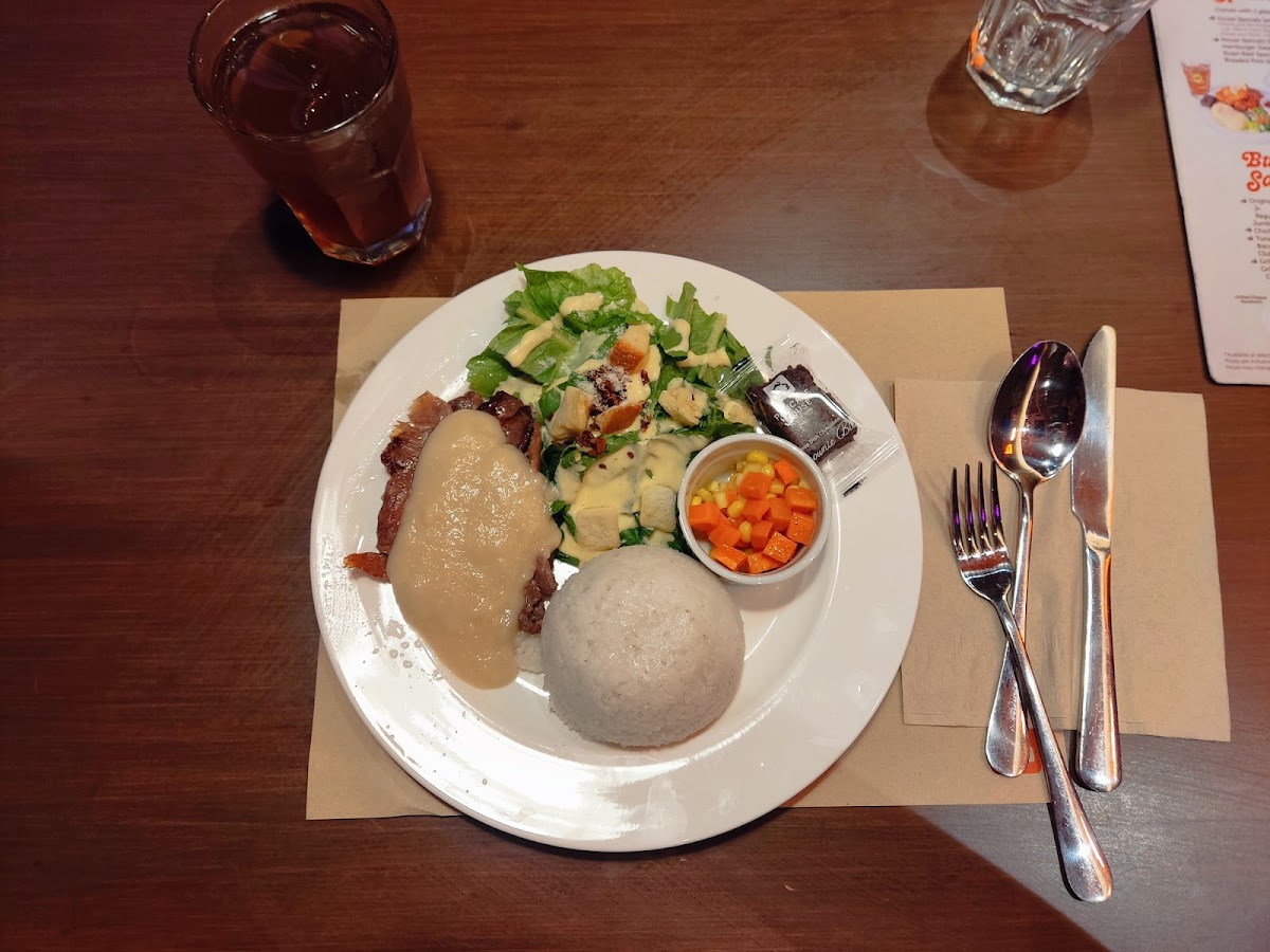 If you're in the mood for hearty comfort food, the Roasted Beef Special Set is a must-try. Tender roasted beef served with fresh vegetables, Caesar salad, rice, a brownie bite, and a drink brings flavor and satisfaction for just ₱499. The café also serves the Chicken Parmigiana, a delicious twist on the classic dish, merging crispy breaded chicken with rich flavors that are hard to resist.